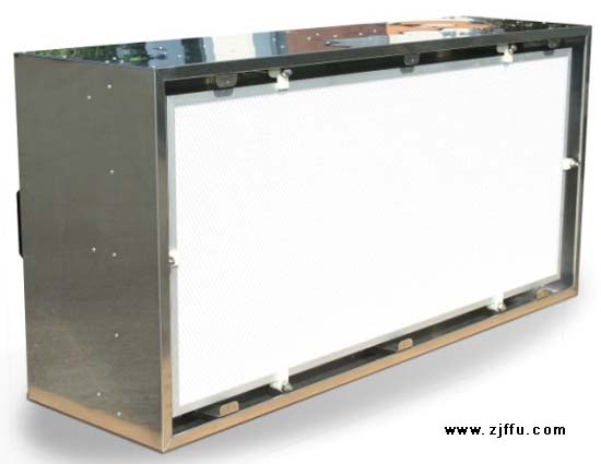FFU層流送風(fēng)單元模塊可連接使用.使得FFU廣泛應(yīng)用潔凈室、超凈工作臺、潔凈生產(chǎn)線、組裝式潔凈室和層流罩等應(yīng)用場合。FFU設(shè)有初、高效兩極過濾網(wǎng)。風(fēng)機(jī)從FFU頂部將空氣吸入并經(jīng)初、高效過濾器.過濾后的潔凈空氣在整個出風(fēng)面0.45m/s±20%的風(fēng)速勻速送出。