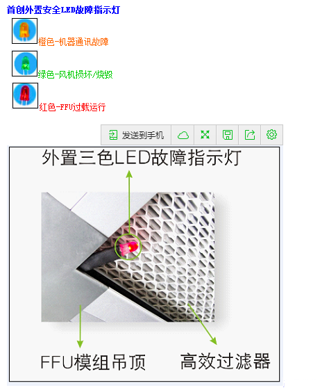 5.FFU采用獨特的風(fēng)道風(fēng)速均勻,整個出風(fēng)面以0.45M/S風(fēng)速均勻送出。