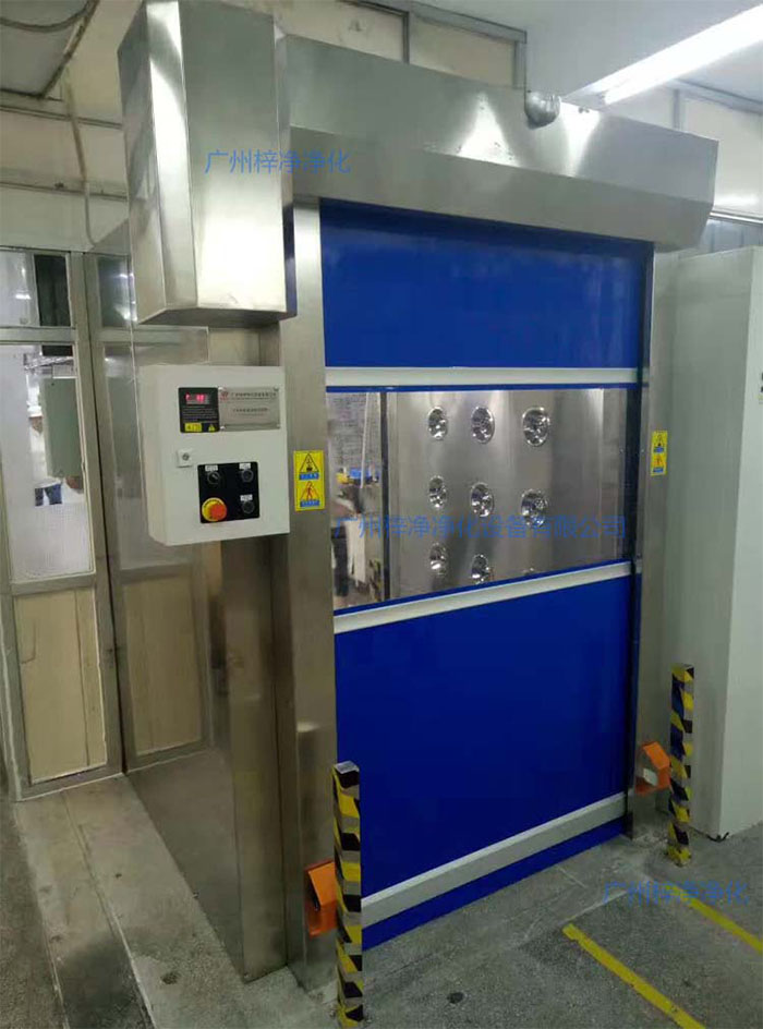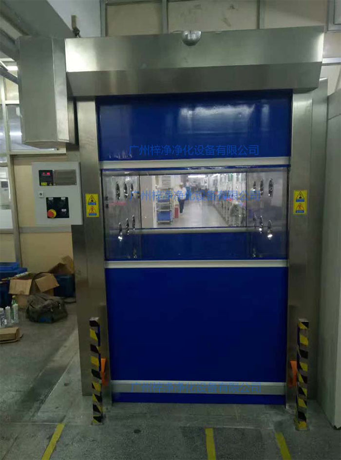快速卷簾門貨淋室主要是方便推車、輸送帶傳遞物料時實現(xiàn)自動化控制、除塵的空氣凈化設備,快速卷簾門貨淋室前門和后門設置為互鎖狀態(tài)。