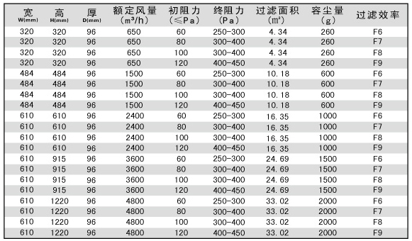 無隔板中效過濾器技術參數(shù)-用戶選購指南