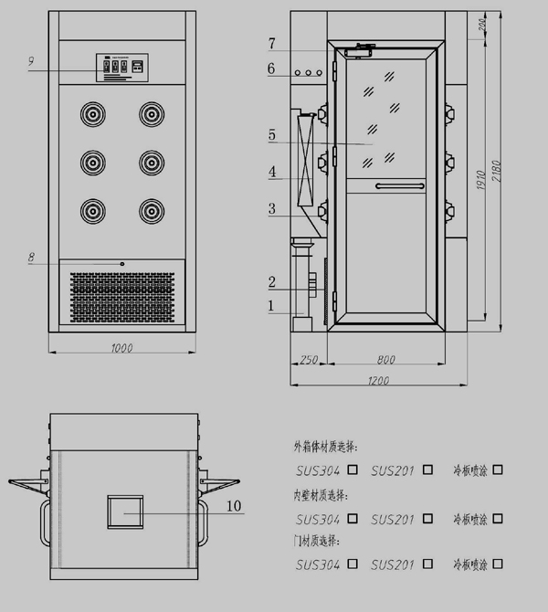 3、箱體采用優(yōu)質(zhì)的冷軋鋼板制造,表面靜電噴塑處理,美觀大方,內(nèi)底板全不銹鋼板制做耐磨擦,易清潔。